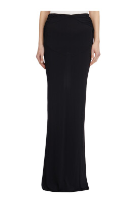 Jupe Noire en Coton Cordon de Serrage Fente Latérale