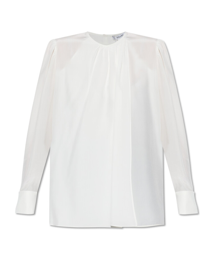 LE HAUT EN SOIE CAROL de Max Mara est un symbole raffiné de l'élégance moderne. Il séduit par sa nuance BLANC PUR et l'éclat exceptionnellement subtil de la soie luxueuse, dégageant une légèreté sans effort. Le haut enchante avec une COUPE LÂCHE, LÉGÈREMENT SURDIMENSIONNÉE, sa silhouette s'élargissant doucement vers l'ourlet pour un confort exceptionnel. Les manches longues, doucement froncées, finies avec de larges poignets ornés de boutons de manchette DÉCORATIFS COMME DES BIJOUX ajoutent une touche sophistiquée au design. Le look est complété par une encolure arrondie atténuée ainsi qu'un pli et un rassemblement artistique au col, accentuant harmonieusement les épaules. Le modèle Carol ne présente aucun logo ou inscription visible, mais brille plutôt par la pureté de sa forme et le style intemporel, fidèle à l'esthétique de MAX MARA. POURQUOI DEVRIEZ-VOUS ACHETER CE PRODUIT ? * Fabriqué en délicate soie luxueuse * Détails exclusifs - boutons de manchette décoratifs sur les poignets * Couleur blanche intemporelle et coupe élégante et polyvalente * Le design minimaliste met en valeur la pureté de la forme * Signature prestigieuse de la maison de mode italienne Max Mara Mesures du modèle Taille : 177 cm Buste : 83 cm Taille : 61 cm Hanches : 89 cm Le modèle porte la taille : 40