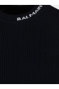 Rehaussez la garde-robe de votre petite fille avec cette élégante robe noire en viscose Balmain. Dotée d'un motif logo jacquard en tricot côtelé, d'une finition contrastante, d'un col rond, de manches longues, d'une taille ajustée, d'une longueur mi-longue et d'un ourlet droit.