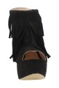 Rehaussez votre style avec ces sandales à talons hauts de La Strada. Fabriquées en textile et cuir de couleur noire élégante, ces sandales sont ornées de franges sur lempeigne. La bride ajustable avec boucle assure un ajustement parfait, tandis que la semelle en caoutchouc offre une bonne adhérence. Hauteur du talon : 14,5 cm. Hauteur de la plateforme : 3,5 cm.