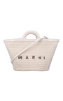 Sublimez votre style avec le sac à main Tropicalia Small Shell de Marni. Confectionné en cuir de qualité supérieure et doté d`empiècements en tissu chic, il est muni d`une bandoulière amovible et de détails époustouflants, ce qui le rend parfait pour toutes les occasions. Caractéristiques clés: Beige | Cuir | Bandoulière amovible | Poche intérieure zippée | Empiècements en cuir et tissu effet raphia | Poignées avec effet en relief | Logo brodé sur le devant | Détails en métal doré | Dimensions et ajustement: Hauteur 21,5 cm | Largeur 38 cm | Profondeur 21 cm | Composition et entretien: 100% Cuir de veau | 52% Coton | 48% Polyamide